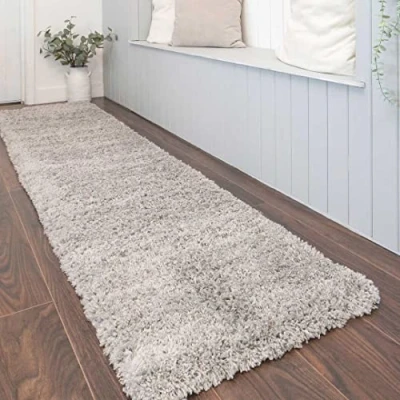 Thick Pile Modern Light Grey Shaggy Runner Rugs Silver Long Hallway Entrance Mat Carpet Soft Fluffy Lounge Living Room Bedroom Area Rug 60cm x 240cm