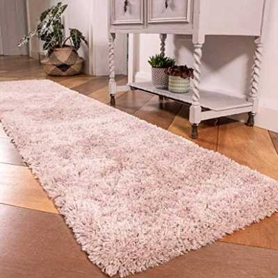 Thick Soft Blush Pink Shaggy Shag Runner Rug Affordable Durable Fluffy Rugs Living Room Area Bedroom 60cm x 240cm