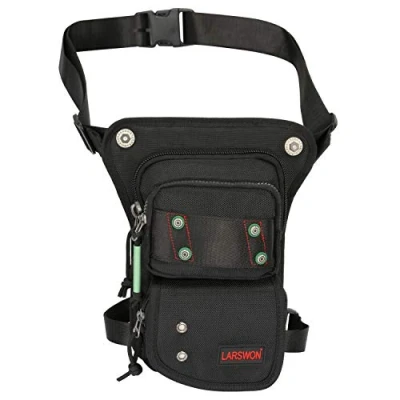 Thigh Pack, Larswon Leg Bag Pouch Tactical Waist Motorcycle Waterproof, B Black, M,