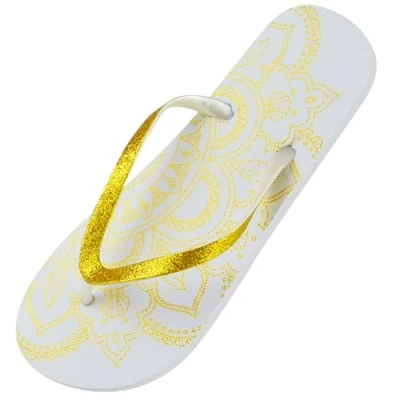Thingimijigs Ladies Flip Flops Glittery Strap Metallic Print Summer Beach Sandals White Mandala UK 7 6