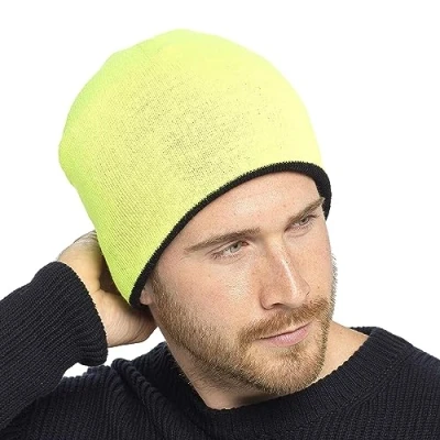 Thingimijigs Men's High Visibility/Black Reversible Knitted Beanie Hat Winter Yellow