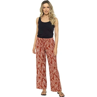 Thingimijigs Women's Orange Patterned Linen Trousers Size 14