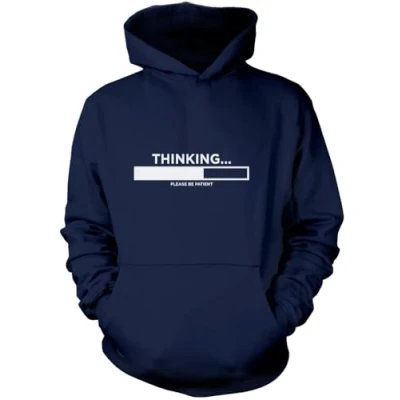 Thinking Please Be Patient Unisex Hoodie Funny Slogan Sarcastic Teen Dad Joke S Navy