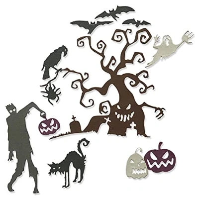 CREEPS – This 10 piece frightfully fun Creeps Thinlits die set can be used individually for added versatility in a range of papercraft projects, or as a complete set as spooky Halloween scene! CUT A VARIETY OF MATERIALS - Thinlits dies allow you to cut intricate designs from a single sheet of paper, card, metallic foil, vellum, shrink plastic and stencil film. IDEAL FOR EVERY CREATIVE PURSUIT - Thinlits dies come in a variety of beautiful shapes and sizes, to add a special touch to all your paper crafting & stencilling projects. COMPATIBILITY - Compatible with Sizzix Big Shot, Sizzix Big Shot Express, Sizzix Big Shot Foldaway, Sizzix Big Shot Plus & Sizzix Big Shot Pro ITEM DIMENSIONS -10.2cm x 9.5cm - 1.9cm x 1.6cm