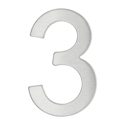 Thirard 00067563 Number 3 Stainless Steel H.76 mm Adhesive Wall Plate with Accessories/Equipment Door Equipment for Indoor or Outdoor Use
