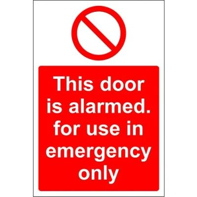 This door is alarmed for use in emergency only safety sign Self adhesive sticker 150mm x 100mm Digitally printed and laminated for extra durability Remove backing film and apply to dry, smooth, oil free surface., Manufacturer: KPCM Display ltd