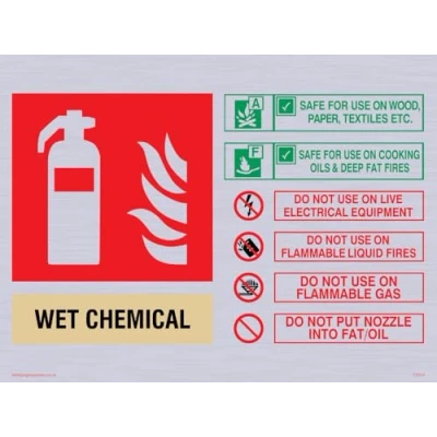 This extinguisher contains Wet Chemical instructions for use Sign 200x150mm A5L