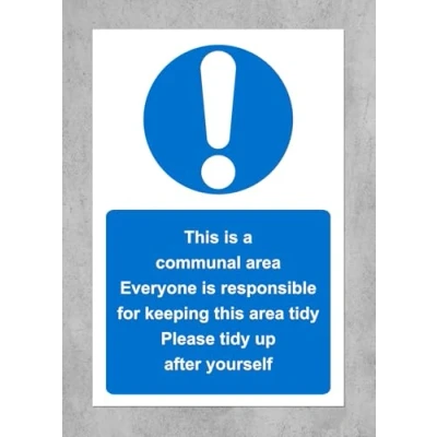 This is a communal area please tidy up after yourself safety sign 1mm Plastic sign Digitally printed and laminated for extra durability Drill and screw in position or use double sided tape to mount onto suitable surface
