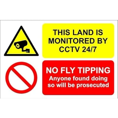 This land is monitored by CCTV 24/7 / No fly tipping 1mm flexible Plastic sign (600mm x 400mm)