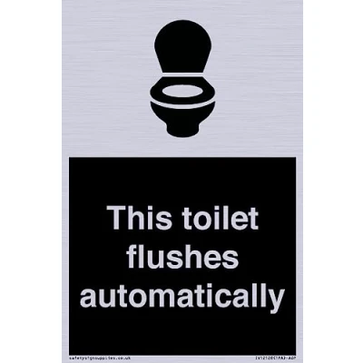 I036 : WC Toilet This sign is made from plastic semi-rigid 1mm 1mm thin plastic sign, can be screwed, stuck with adhesive, or attached with cable ties. Not suitable for hanging. A6 portrait Sign Text: This toilet flushes automatically