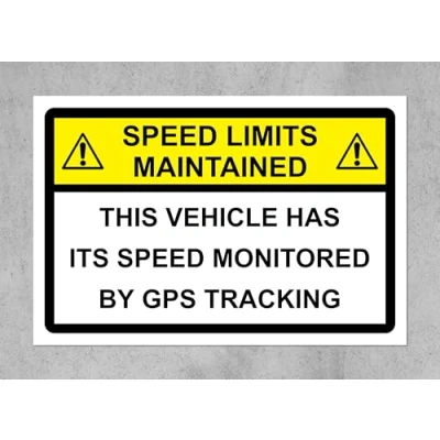 This vehicle has its speed monitored by GPS tracking sign Self adhesive sticker Digitally printed and laminated for extra durability Remove backing film and apply to dry, smooth, oil free surface.