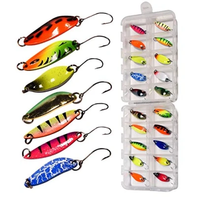 Thkfish 20Pcs Trout Fishing Spoon Set Hard Baits with Single Hooks Metal Lures for Char Perch