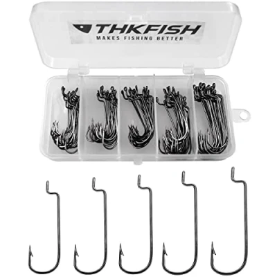 THKFISH 50pcs/Box Fishing Offset Worm Hooks EWG Round Bend Wide Gap With Barbed Shank #2#1 1/0 2/0 3/0