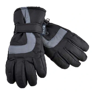 For your little skier, we've got the perfect accessory. These Kids THMO Ski Gloves with a 3M Thinsulate lining will keep them warm and comfortable. They're thick, cozy, and protective, so they'll make any trip to the slopes fun and safe. With expert insulation and waterproofing, these gloves are made for all types of cold weather especially snow and rain. The protective cuff will protect their wrists from the wind and snow and they include an adjustable velcro strap to make sure these gloves are perfectly comfortable. They're made out of 100% polyester material and have 3M Thinsulate lining on the inside as well as extra padding so they'll stay warm even in sub-zero temperatures which is perfect for a day of skiing or snowboarding with family. Thinsulate is well known for keeping you warm and is considered one of the most effective linings. The purpose of the lining is to hold warm air inside the gloves and to keep the hot air close to your skin. The THMO logo badge is on the cuff, separating your glove fashion from the rest. Remember... BE WARM, THINK THMO. They are available in Black and come in 4 size options: 6-7 Years, 8-9 Years, 10-11 Years & 12-13 Years. They are 100% Polyester and are Machine Washable.