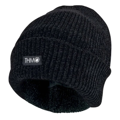 Did you know that you lose the majority of your body heat from your head? You might think your feet or your hands are where you lose your internal heat because they are stone cold. But, it is your head, as it is usually warm and the warmth escapes through there. These Ladies THMO hats are designed to keep the heat in. They are a great winter accessory with a fashionable touch to keep not just your head but your whole body. These womens THMO hats are made from 100% chenille. Chenille is a super soft material and is known to be softer than acrylic. It also gives off a luxuriously plush look, a winter fashion accessory to be proud of. It is also a good thermal insulator, holding warm air close to your head and trapping the heat that is generated by your head. The outer is also ribbed to increase security. Inside the hat is the 3M Thinsulate lining, the famous brand thats purpose is to keep you warm against the snow, ice and other cold weather. There is arguably no better than lining than Thinsulate. The cuff also hugs the side of your head firmly so that heat can not escape though the sides of the hat. The hat also has a turnover cuff, so you can wear the hat cuff turned over or you can straighten the hat out to give you some extra length. This means you can wear the beanie with a slouch effect. On the cuff is the black THMO badge stitched into the front of the hat. The style of the hat is ribbed and is not just a plain knit. These ladies THMO hats are made in one size and they are available in 3 different colours including ruby red, light grey and jet black. They are made from 100% chenille and they are safely machine washable.
