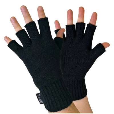 THMO Mens Black 3M Thinsulate Insulation Lined Fingerless Gloves Size Medium