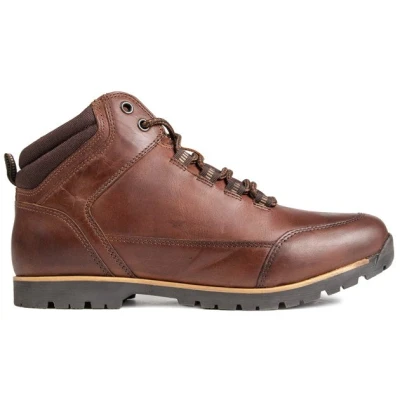 Mens brown Red Tape drake boots, manufactured with leather and a synthetic sole. Featuring: cleated sole, padded ankle collar, loop eyelets, cushioned foam insole and heel loop.