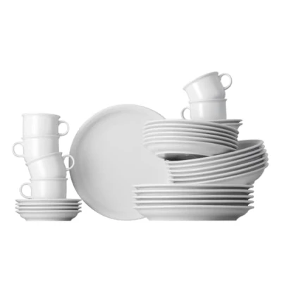 The set contains: 6 dinner plates - 26 cm, 6 soup bowls - 22 cm, 6 breakfast plates - 20 cm, 6 coffee cups - 0.18 l, 6 coffee cup saucers - 14 cm High-quality porcelain from the Thomas brand Fine groove structure. Dishwasher-safe Microwave-safe The many basic and additional items leave no wish unfulfilled. Modern, functional, individual. Trend - a well thought out piece of living culture for our time.