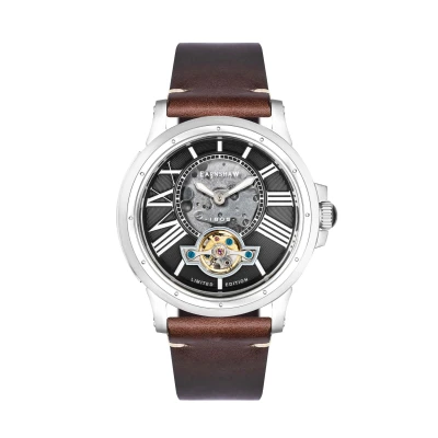 Thomas Earnshaw Bertha Limited Edition Open Heart Mens Automatic Jet Black Watch ES 8244 01 Silver & Brown One Size