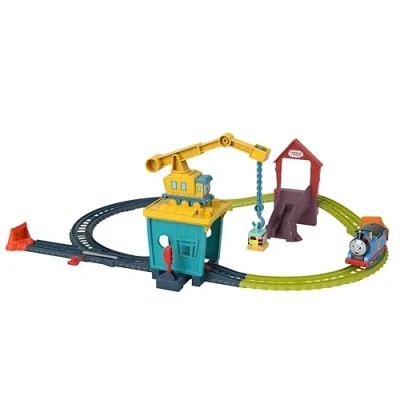 The Thomas & Friends Fix 'em Up Friends train set, from Fisher-Price, is an 18-piece battery-powered train and track set that includes three engine toys of popular characters from the TV show. The Thomas, Carly the Crane and Sandy the Rail Speeder toys are compatible with all other Thomas & Friends tracks, except for wooden tracks (alternative track sets sold separately). Children can use Carly the Crane’s hook for loading and unloading cargo into Thomas’s cargo car, with Sandy the Rail Speeder on hand to join in with the fun! The Thomas train toy is battery powered, and he speeds around the track with the flick of a switch! This interactive playset is perfect for little hands, helping develop motor skills whilst having lots of fun., Manufacturer: Thomas & Friends