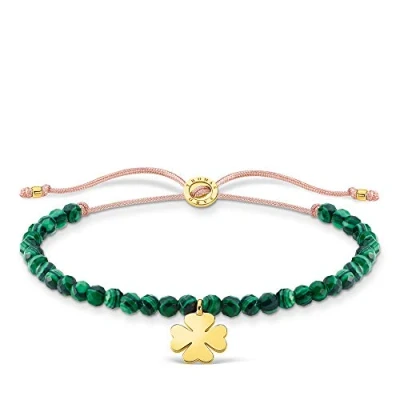Thomas Sabo Green Beads with Clover Gold 925 Sterling Silver Bracelet of Length 13 20 cm
