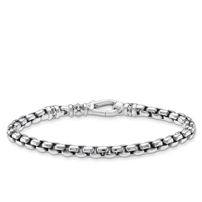Very beautiful men's bracelet from Thomas Sabo Discover the distinctive Venetian bracelet with large chain links and exciting details at the ends and clasp This elegant piece of jewellery with 4 mm diameter has an iconic lobster clasp decorated with a Thomas Sabo lettering This means that the precisely crafted bracelet made of sterling silver can be easily put on and taken off, which is why it is wonderful as a basic jewellery in everyday life You can also wear it as a statement piece for special occasions