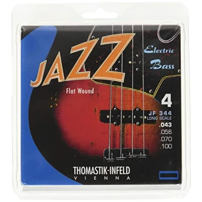 The Thomastik-Infeld Flat Wound string set was specifically developed for the electric bass Jazz Bass and offers a warm, precise, and balanced tone for professional demands. This high-quality set JF324 is ideally suited for Jazz Bass models as a Flat Wound Long Scale 34" version. The strings consist of a round steel core with a nickel alloy winding, processed flatwound and additionally with silk inlay for a smooth playing feel and extra durability. With gauges of .043, .056, .070, and .100, the set offers a perfectly matched balance of playing comfort, clear response, and defined sound. Manufactured in Europe, Thomastik-Infeld impresses with the highest precision, many years of experience, and quality in string making.