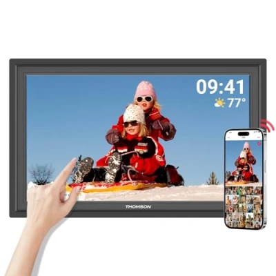 🖵Full HD IPS Touchscreen: The digital photo frame is equipped with a 15.6-inch touchscreen Full HD display with a resolution of 1920x1080, which is clearer and larger than other photo frame screens on the market. With a viewing angle of 180°, you can also view photos from other angles and easily browse the settings of photos, videos and digital photo frames. 🖼Multifunctional electronic photo frame: Our digital photo frame has the function of automatically rotating the screen. You can watch it in portrait or landscape orientation. This digital picture frame is suitable for horizontal or vertical placement. Image carousel settings and video playback functions, as well as more custom settings functions (slideshow time interval and sleep mode, etc.). Up to 5 interfaces can be connected: DC-4.0/Type C/SD card/USB A/3.5mm headphone jack to meet your different needs. 🛜Digital photo frame wifi and "Thomson Smart Frame" instant sharing: The mobile phone software "Thomson Smart Frame" digital photo frame supports photo and video sharing. You can instantly share happy moments with family and friends through applications/Google photos/Type C/SD card/USB device, etc. The app is available for Android and iOS phones. 💾Built-in 32GB storage & record beautiful memories: The photo frame digital has a built-in 32 GB capacity, which can store more than 50,000 photos. It also supports expansion with SD/SDHC/MMC cards or USB drives, up to 256GB. It can meet your daily needs. This large memory digital photo-frame is a great alternative to traditional photo frames. 📆Digital photo frame for any occasion: Our Thomson electronic photo frame is a perfect gift for the holidays, suitable as a gift for Mother's Day, Father's Day, Christmas, Thanksgiving, birthdays and wedding anniversaries, family reunions. You can enjoy it with your loved ones at any time. Share beautiful and unforgettable memories with friends.