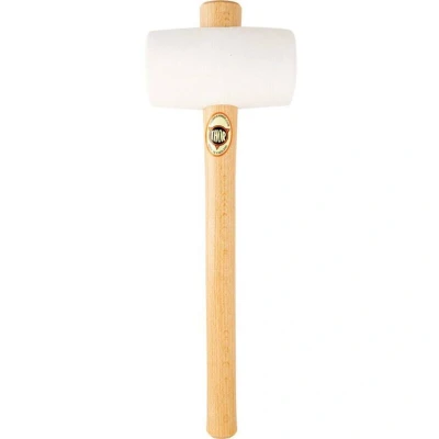 General description This is a white rubber mallet designed for various applications such as woodworking, construction, automotive work, and assembly. It features a non-marking rubber head that prevents damage to work surfaces and delicate materials, providing a firm blow while minimizing rebound and misdirection for precise work. Technical specifications Weight: 970g (approximately 2.14 lb) Diameter: 74mm (3 in) Handle Material: Wood Head Material: Rubber Head Shape: Cylindrical Overall Length: 380mm Shore A Hardness: 85 (white rubber head) Compatibility and accessories Replacement handles available with product codes 99-952, 99-953, 99-9547, and 99-9547, suitable for different sizes of this mallet. Installation The handle is designed to be self-locking, providing a secure attachment between the rubber head and the wooden shaft. Replacement handles can be installed by removing the old handle and fitting the new one securely. Usage Ideal for woodworking where non-marking impacts are