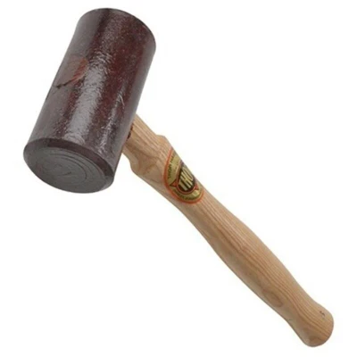 General description This high-quality wooden-handled mallet features a rawhide head, designed for precise and controlled strikes. It is suitable for various applications such as jewelry making, metalwork, and equine care. The mallet absorbs recoil and dampens sound, preventing damage to finished surfaces while providing a firm, resilient hit. Technical specifications Handle Material: Wood (high-quality hardwood) Head Material: Rawhide Head Diameter: 44mm (1 3/4 inches) Head Shape: Cylindrical Overall Length: 305mm (12 inches) Weight: Approximately 225g (1/2 lb) MPN: 02-114 EAN: 5012936011406 Compatibility and accessories Designed for use in jewelry making, metalworking, and other delicate craft applications Compatible with various tools requiring a soft, resilient mallet Installation No installation required; ready to use out of the box. Usage Use for gentle, controlled strikes to avoid damaging surfaces Ideal for shaping, assembling, or finishing delicate materials Ensure the handle