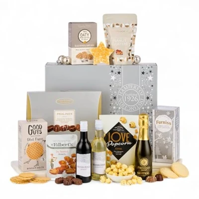 Thornton and France Silver Frost Christmas Hamper With Prosecco White Wine & Red Plus A Range Of Sweet Savoury Treats Gift For Sharing 12 Luxury Items