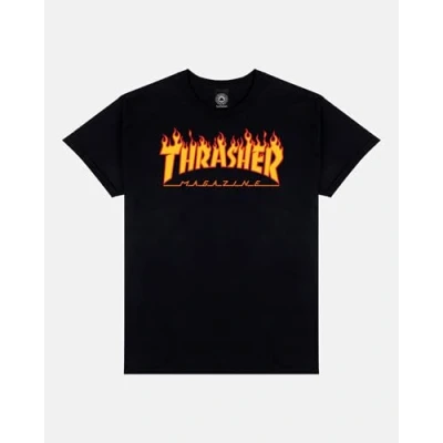 Thrasher Men's T Shirt, Black (Black/Flames), M