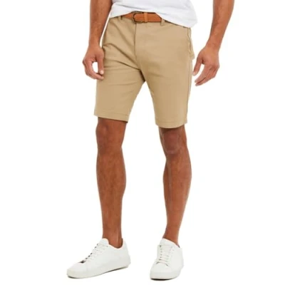 Threadbare Mens Stone 'Conta' Cotton Turn Up Chino Shorts with Woven Belt Size 30W/32L