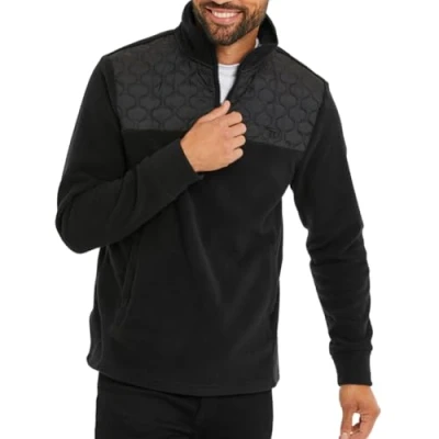 Threadbare 'Pedro' Men's Quolted Quarter Neck Zip Fleece Sweatshirt, Black, S