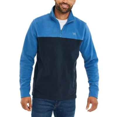 Threadbare 'Wham' Mens Two Tone Colourblock Quarter Zip Microfleece Sweatshirt Jumper, Cobalt/Navy, S