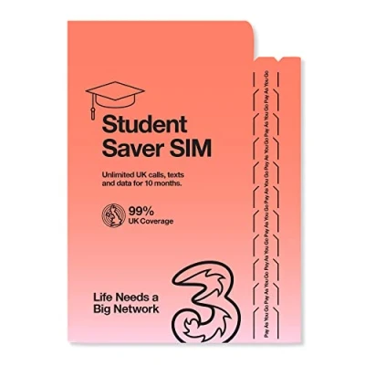 Three 10 Month Unlimited Saver Pay As You Go SIM