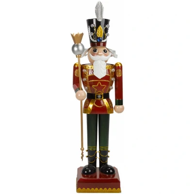 General description This 80cm hand-painted metal Nutcracker is a delightful Christmas decoration that embodies traditional festive charm. Inspired by the E. T. A. Hoffmann fairy tale, this light-up soldier adds a whimsical touch to your holiday decor. It lights up to create a magical atmosphere while standing guard over your festive treats. Technical specifications Height: 80 cm Power: 3 x AA batteries (not included)