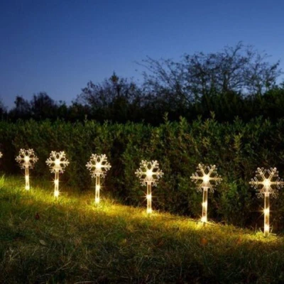 Each light features a beautiful snowflake design, capturing the essence of winter and the festive spirit. They are crafted to easily insert into soft ground, making them ideal for lining pathways or as an eye-catching feature at doorways and entrances. With their colorful and distinctly festive appearance, these stakes add to the overall charm and ambiance of your garden or outdoor setting.