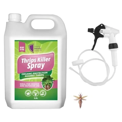 Professional Thrips Control for Large Gardens – This 2.5L Thrips Killer Spray delivers fast-acting protection against thrips infestations. Designed for use on houseplants, greenhouses, and garden plants, it tackles adults and larvae to restore plant health and prevent further damage. Natural Insecticidal Soap Formula – Crafted from potassium salts and natural soya oils, this biodegradable pest control spray eliminates thrips, aphids, and whiteflies safely and effectively. An eco-friendly alternative to harsh chemical pesticides that’s gentle on plants and the environment. Safe for Indoor & Outdoor Use – Perfect for use on houseplants, ornamentals, fruiting plants, and vegetables. This plant-safe insecticide provides long-lasting protection without leaving stains or harmful residues—ideal for homes, gardens, and greenhouses. Large 2.5L Coverage for Heavy Infestations – The extended-capacity bottle ensures wide coverage across large plant collections or multiple growing areas. Suitable for gardeners and professionals dealing with serious pest problems in indoor or outdoor environments. Supports Healthy Plant Growth – Regular use prevents pest damage, encouraging stronger roots, greener leaves, and more vibrant growth. This thrips spray not only removes infestations but also supports recovery, helping plants thrive naturally and stay pest-free.