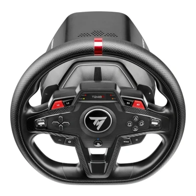 Powerful, Adjustable T-HD Force Feedback: Feel every track nuance with Hybrid Drive technology delivering a realistic 3.1 N·m of torque. Adjustable directly from the wheel, ensuring an immersive and responsive sim racing experience. Ultimate Comfort and Control: Ergonomic racing wheel (28 cm diameter) featuring a stylish, sporty design, finished with perforated leather and carbon-look accents. Includes 25 action buttons for instant access to all settings in your favorite driving games. Innovative Race Information Interface: A next-generation interface featuring an integrated LCD screen and 4 LEDs, allowing you to adjust real-time Force Feedback settings and immediately visualize key race data (RPM, gear, lap times, etc.). Lightning-Fast Shifting Response: Mag-Shift magnetic paddle shifters ensure instant, accurate, and lag-free gear changes. Perfect for high-speed maneuvers in competitive simulation games. Professional T3PM 3-Pedal Set: Robust and durable 3-pedal set with Hall Effect sensors for surgical precision and extreme longevity. Offers 4 unique pressure modes on the brake pedal, allowing you to fine-tune your sim racing setup. Wide Compatibility and Mounting: Compatible with PlayStation 5, PS4, and PC (Windows 10/11). Easily mounted on any desk, table (up to 45 mm thickness), or to a racing seat/cockpit thanks to the included universal clamping system., Platforms: PlayStation 5