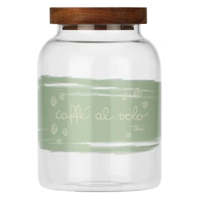 Jar: Borosilicate glass; Cap: acacia, silicone seal