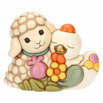THUN, Pair of Nelly Lamb and Esther Hen in Hand Decorated Ceramic, Range Easter Surprises, 29 x 15.5 23 cm h