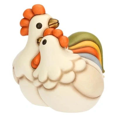 THUN Pair Rooster Jack and Ester Hen, Ceramic, Spring Garden Collection, 8" x 7.8"