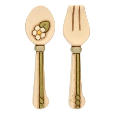 THUN Wall Spoon and Fork Set Ceramic Country Bloom Collection "SPOON 4.4x1.5x15.2 4.1x1.6x15.2"