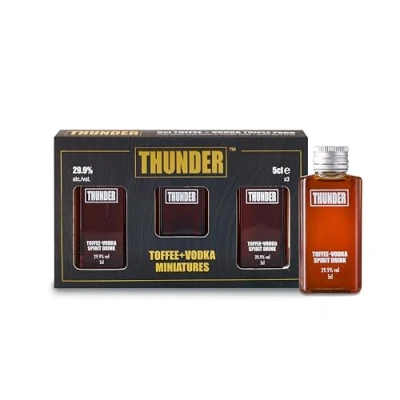 Thunder Toffee Vodka Flavoured Mixed with Premium Bottled and Distilled Five Times Crafted in the UK 29.9% ABV 3 x 5cl Bottles