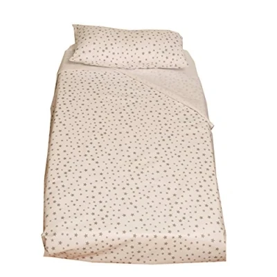 Ti TIN 3 Piece Bed Set Duvet Cover for cot, 60 x 120 cm + Fitted Sheet with Elastic Band Pillow case, 100% Cotton poplin Star Design, Grey