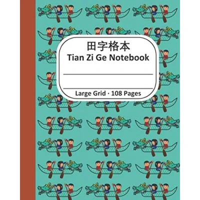 Tian Zi Ge Notebook, Large Grid, 108 Pages: Tianzige Writing Paper for Chinese Characters, 8''x 10'', in Sea Green Dragon Boat