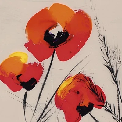 Tibi Hegyesi "Three Poppies White Canvas Print, Multi Colour, 40 x 50 cm