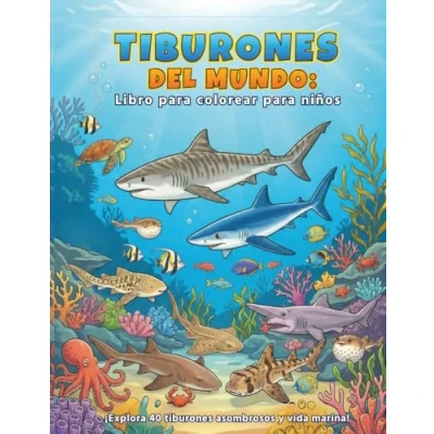 TIBURONES DEL MUNDO: Libro para colorear niños