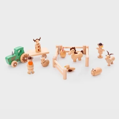 COMPLETE FARMYARD STORY SET: Beautifully hand-finished wooden farm collection includes eleven detailed pieces, featuring a farmer, scarecrow, tractor with trailer, horse, pig, sheep, duck, chicken and goat. SUSTAINABLE NATURAL MATERIALS: Crafted from FSC certified beechwood with smooth finishes and durable construction, offering an eco-conscious, long-lasting resource for early years play. TACTILE INTERACTIVE DETAILS: Thoughtful painted and printed features, moving parts and faux leather accents provide rich sensory appeal and hands-on engagement during imaginative play. SUPPORTS ROLE PLAY & LANGUAGE: Encourages storytelling, role play and collaborative play scenarios, helping children develop vocabulary, narrative skills and social communication. EXPANDABLE SMALL WORLD PLAY: Fully compatible with tickit Farm Discovery Dividers, Wooden Domestic Animals and People Who Help Us sets to create larger, immersive play environments., Manufacturer: tickit